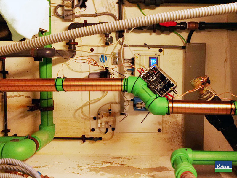 The Anti-Scale System Vulcan S25 treats pipe diameters up to 4" and have been designed to perfectly meet the requirements of commercial facilities. This programmable unit allows an individual adjustment according to the material and diameter of the pipes. Appliances and equipment which come in contact with hard water will have a longer life expectancy, when Vulcan is installed. Less time and effort is needed for cleaning, repairs and maintenance, etc. Installation - without cutting the pipe.
